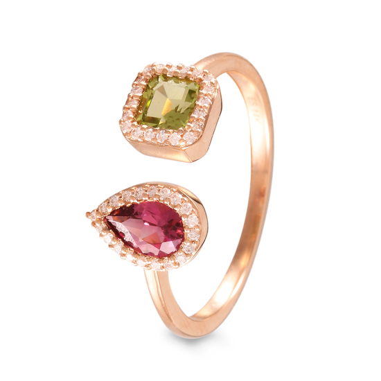 15% OFFAnillo con turmalina y peridoto con halo de diamantesAnillo en oro rosa de 14 k con turmalina , peridoto y diamantes laterales.